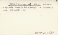 [ŚWIERZ Mieczysław] 1921 s Ankieta w sprawie rozwoju Zakopanego.