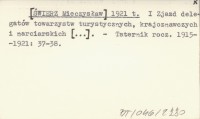 [ŚWIERZ Mieczysław] 1921 t I Zjazd delegatów towarzystw turystycznych, krajoznawczych i narciarskich [...].