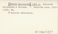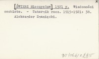 [ŚWIERZ Mieczysław] 1921 y Wiadomości osobiste.