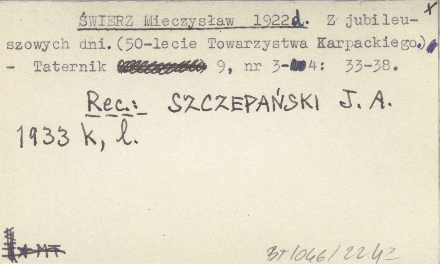 Taternik, 9, nr 3-4: 33-38. REC: SZCZEPAŃSKI J. A. 1933 k, l