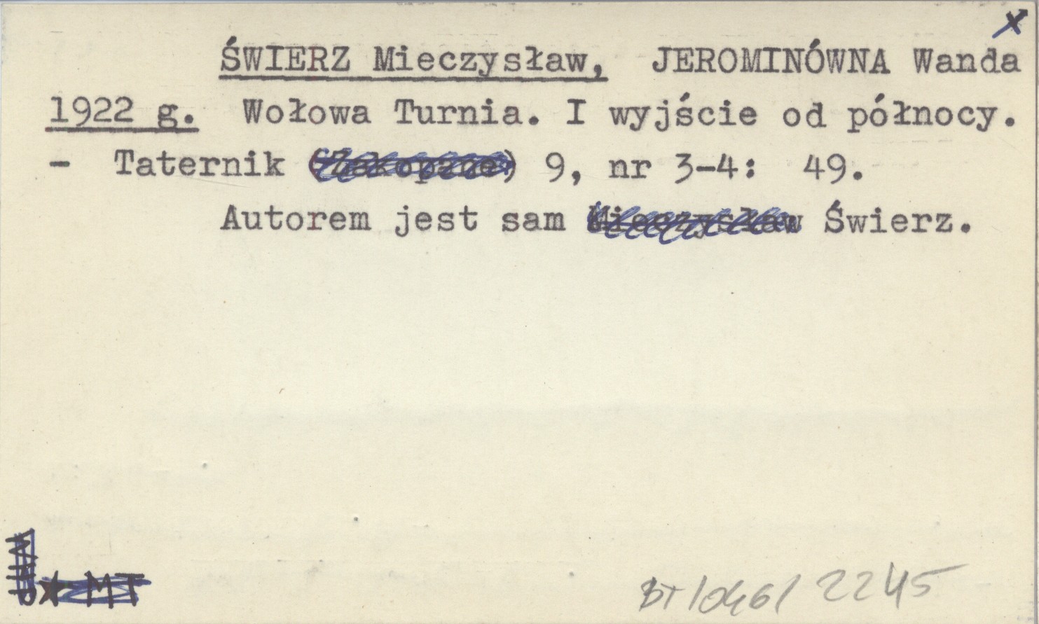 ŚWIERZ Mieczysław JEROMINÓWNA, Wanda. ; 1922 g Wołowa Turnia. I wyjście od północy.