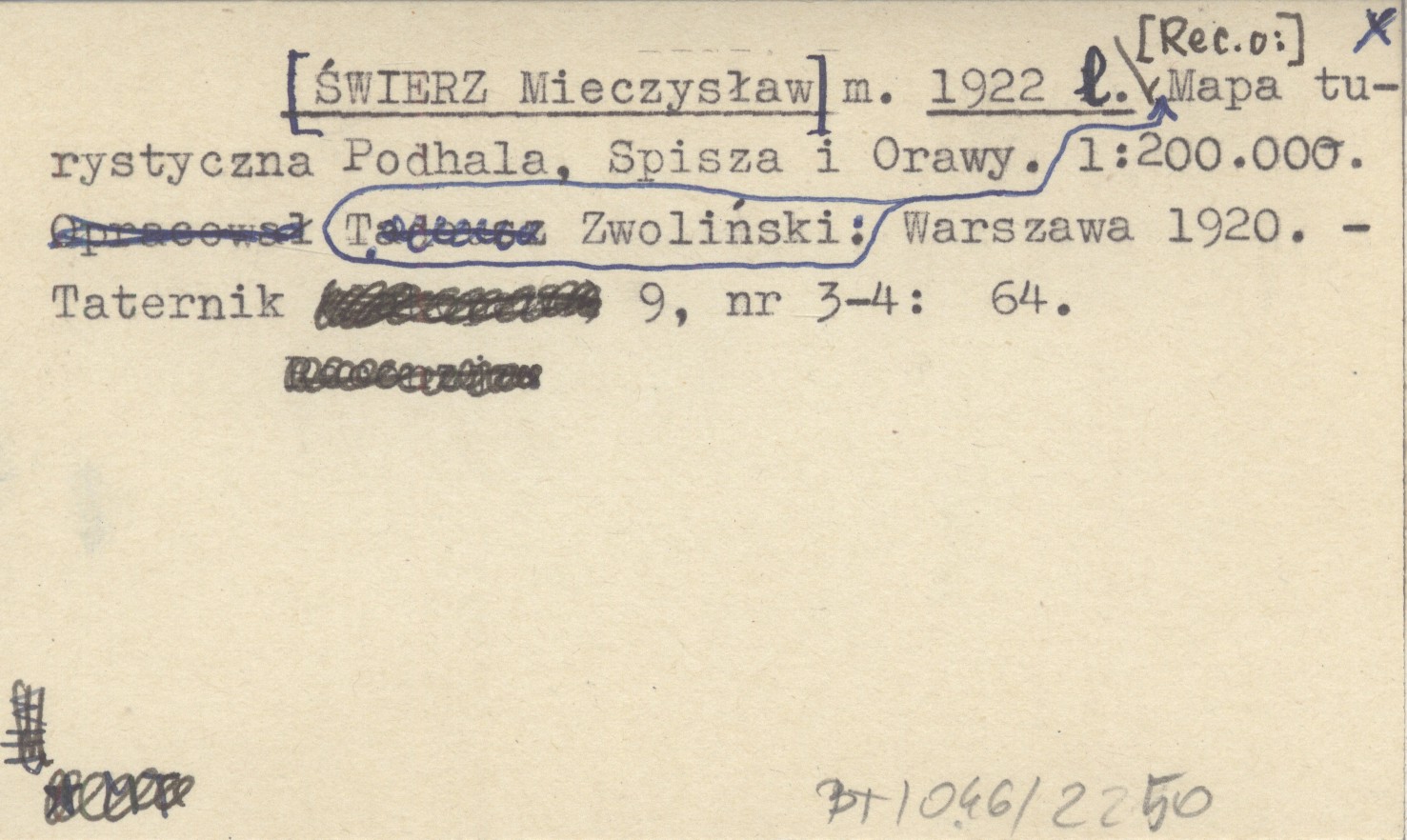 m. [ŚWIERZ Mieczysław] 1922 l [Rec. o:] T. Zwoliński: Mapa turystyczna Podhala, Spisza i Orawy. 1:200 000. Warszawa 1920.