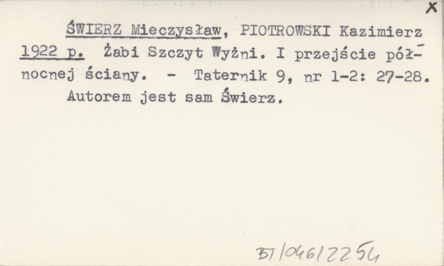 ŚWIERZ Mieczysław PIOTROWSKI, Kazimierz. ; 1922 p Żabi Szczyt Wyżni. I przejście północnej ściany.
