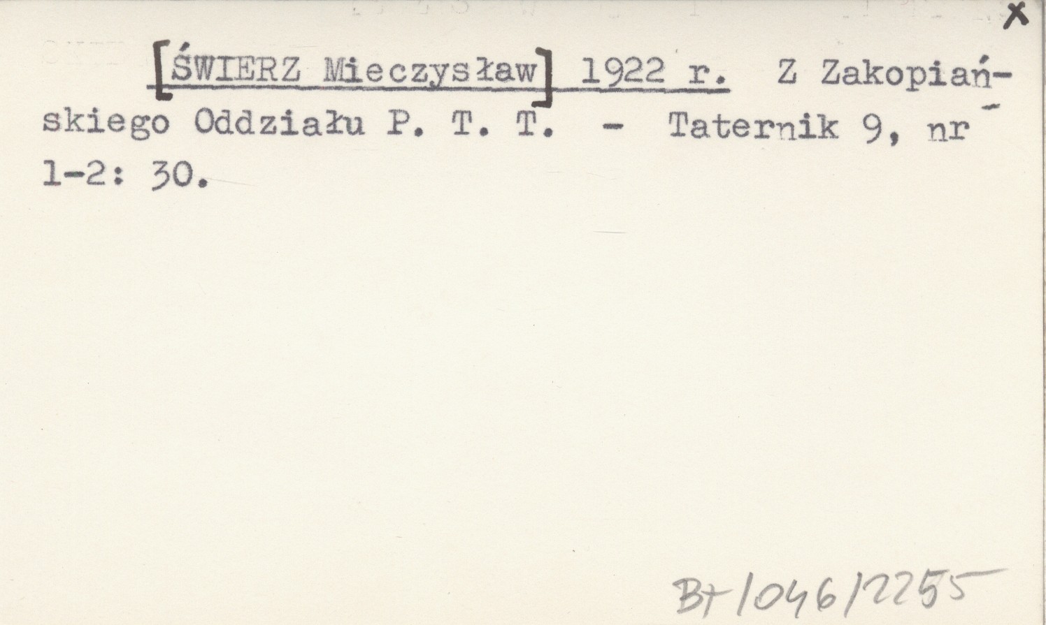 [ŚWIERZ Mieczysław] 1922 r Z Zakopiańskiego Oddziału P.T.T.