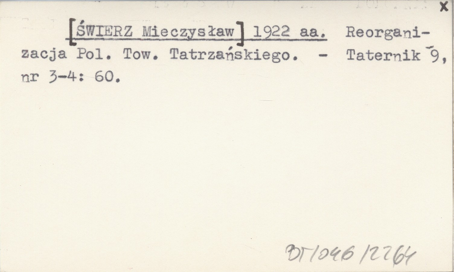 [ŚWIERZ Mieczysław] 1922 aa Reorganizacja Pol. Tow. Tatrzańskiego.