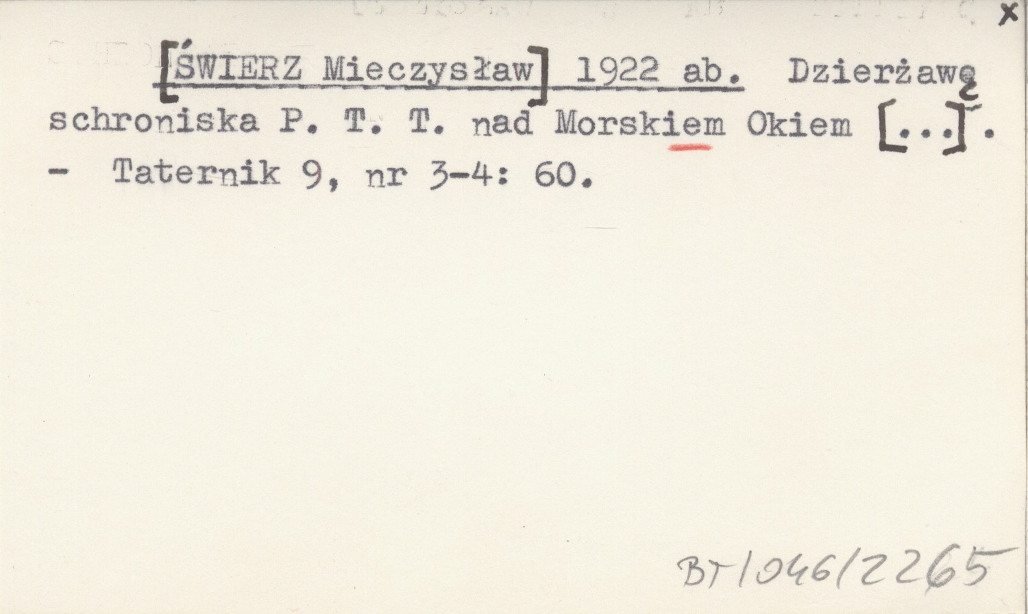 [ŚWIERZ Mieczysław] 1922 ab Dzierżawę schroniska P.T.T. nad Morskiem Okiem [...].