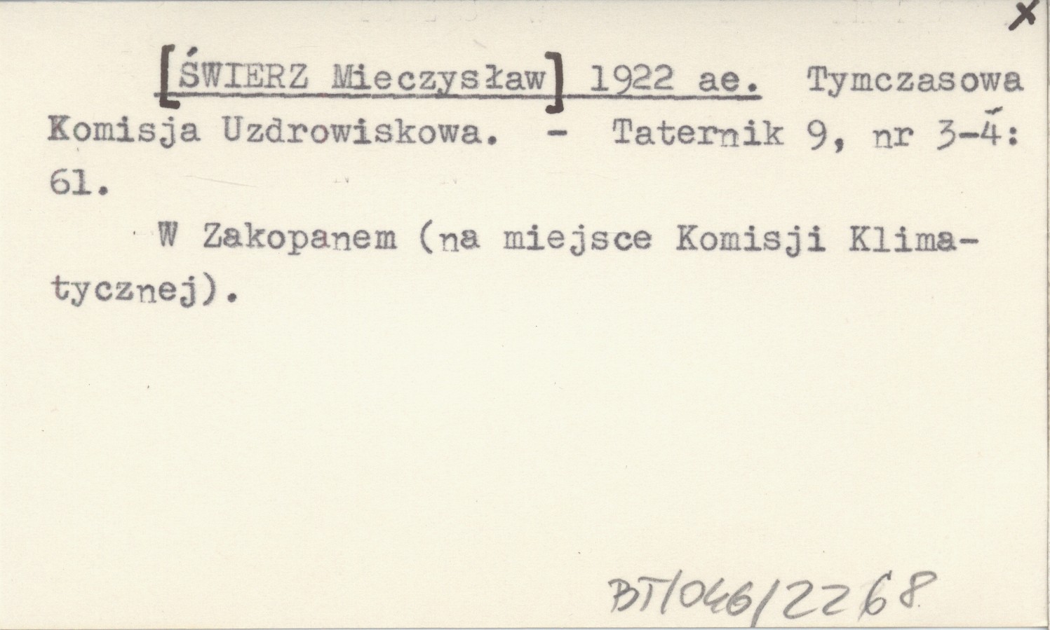 [ŚWIERZ Mieczysław] 1922 ae Tymczasowa Komisja Uzdrowiskowa.