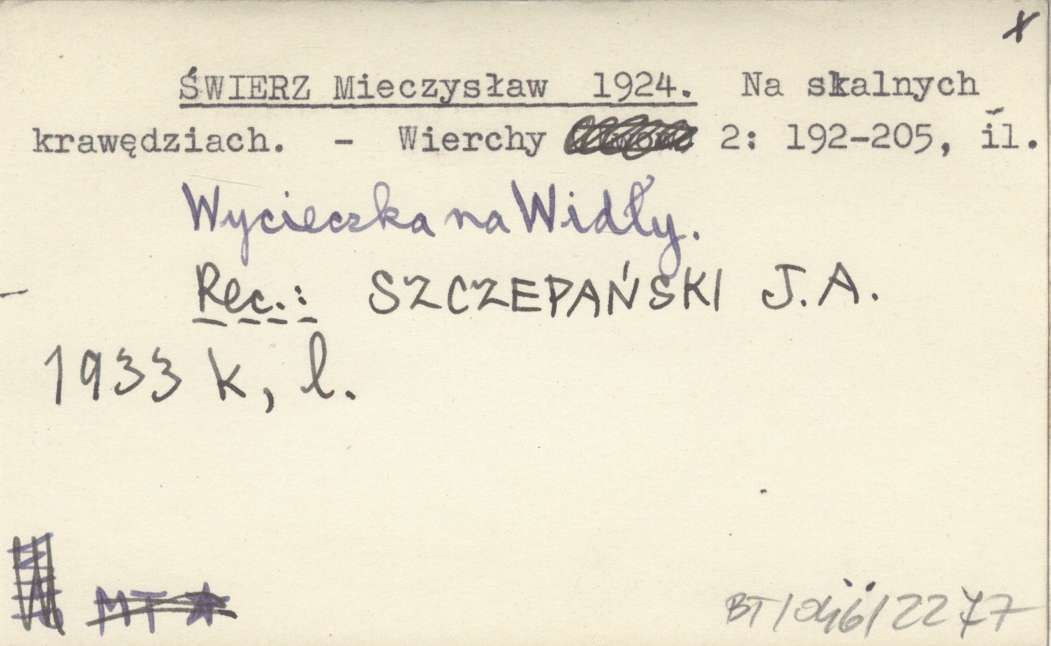 Wierchy, 2: 192-205, il. Wycieczka na Widły. REC: SZCZEPAŃSKI J. A. 1933 k, l