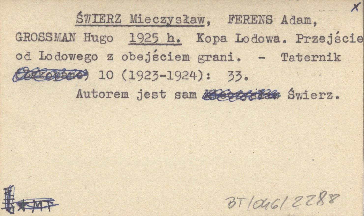 ŚWIERZ Mieczysław FERENS, Adam. ; GROSSMAN, Hugo. ; 1925 h Kopa Lodowa. Przejście od Lodowego z obejściem grani.
