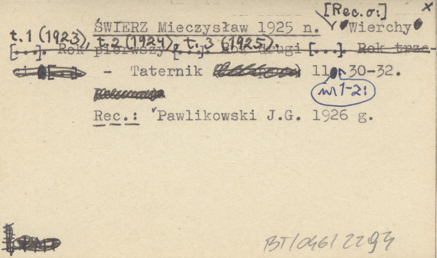 Taternik, 11, nr 1-2: 30-32. REC: PAWLIKOWSKI J. G. 1926 g
