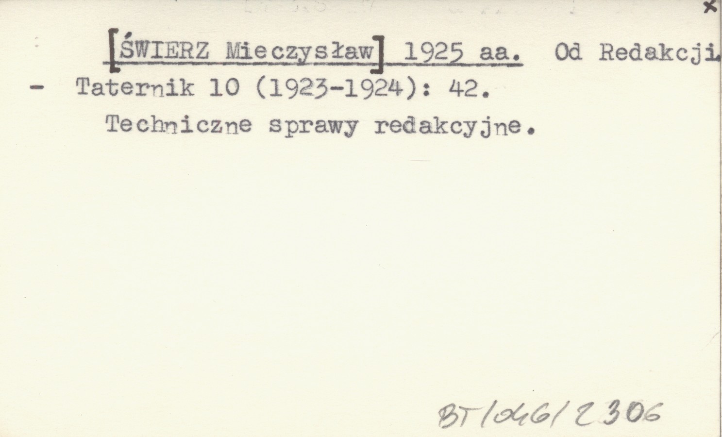Taternik, 10 (1923-1924): 42. Techniczne sprawy redakcyjne.