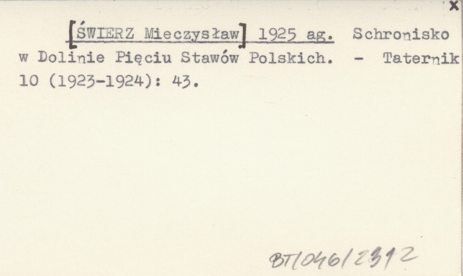 [ŚWIERZ Mieczysław] 1925 ag Schronisko w Dolinie Pięciu Stawów Polskich.