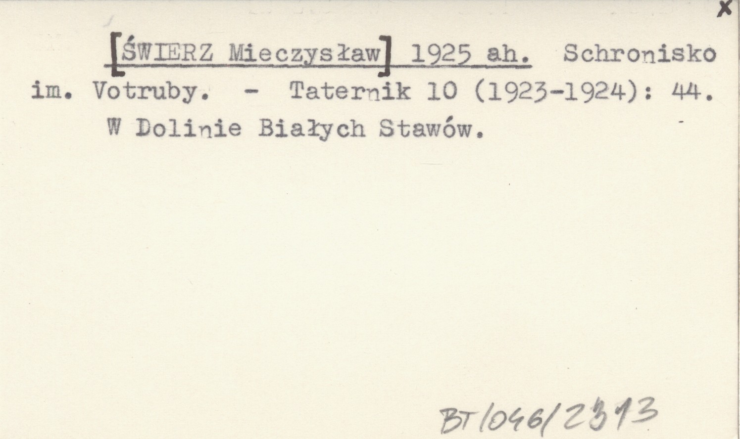 [ŚWIERZ Mieczysław] 1925 ah Schronisko im. Votruby.