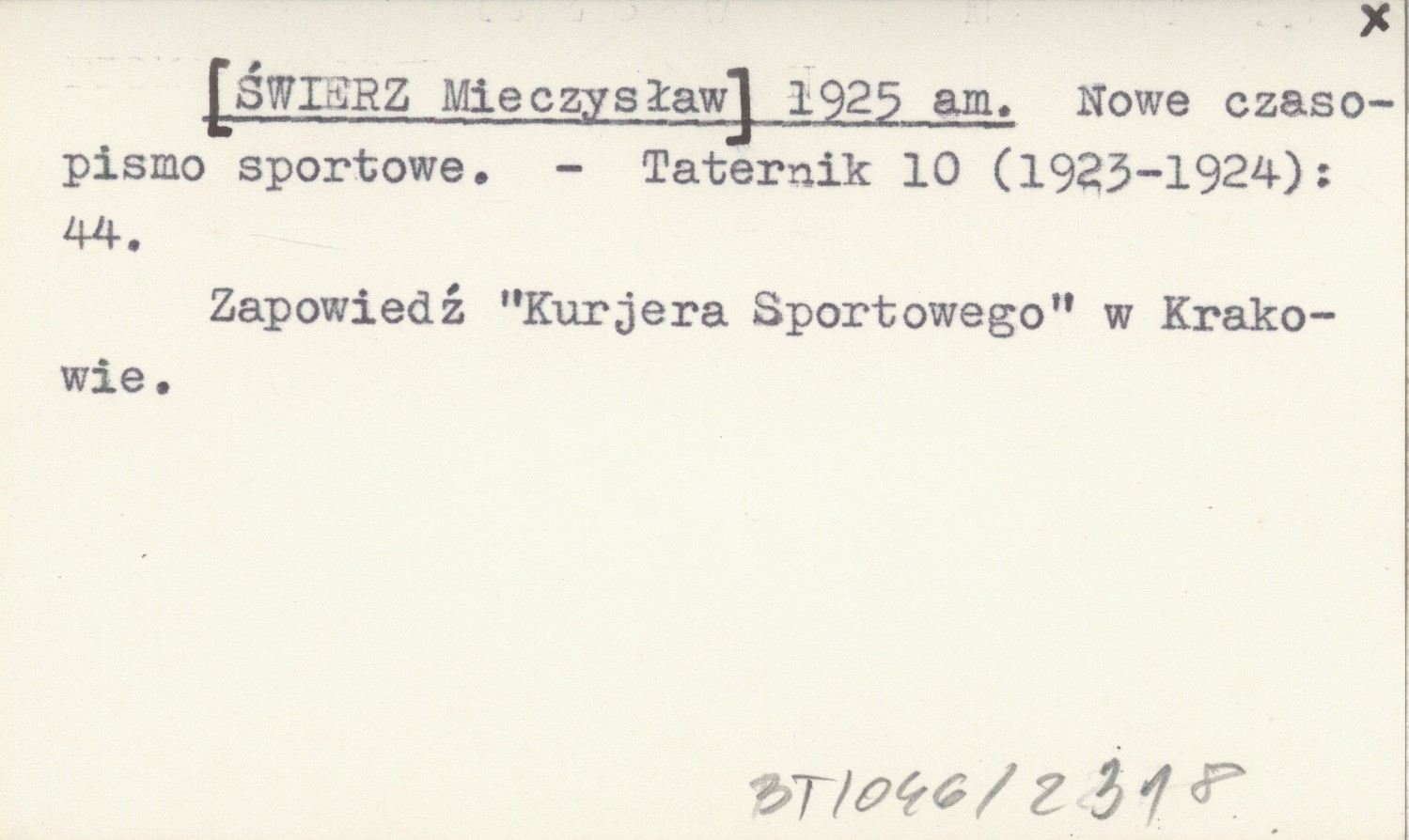 [ŚWIERZ Mieczysław] 1925 am Nowe czasopismo sportowe.