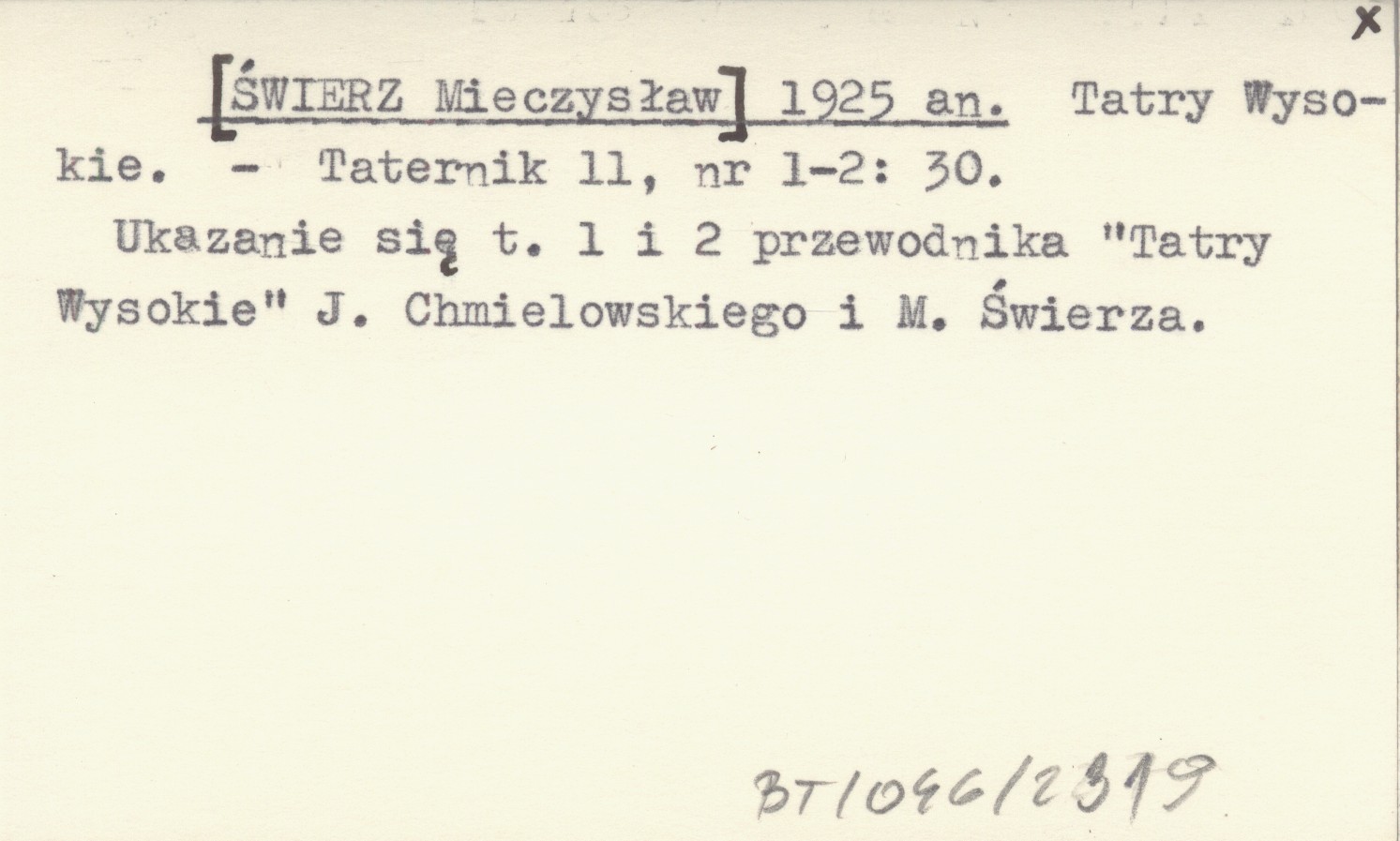 Taternik, 11, nr 1-2: 30. Ukazanie się t. 1 i 2 przewodnika "Tatry Wysokie" J. Chmielowskiego i M. Świerza.