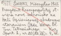 ¦WIERZ Mieczys³aw 1925 Prezydent Rzeczpospolitej otwiera nowe schronisko na Hali G±sienicowej zbudowane staraniem Oddz. Warsz. Pol. Tow. Tatrzañskiego.