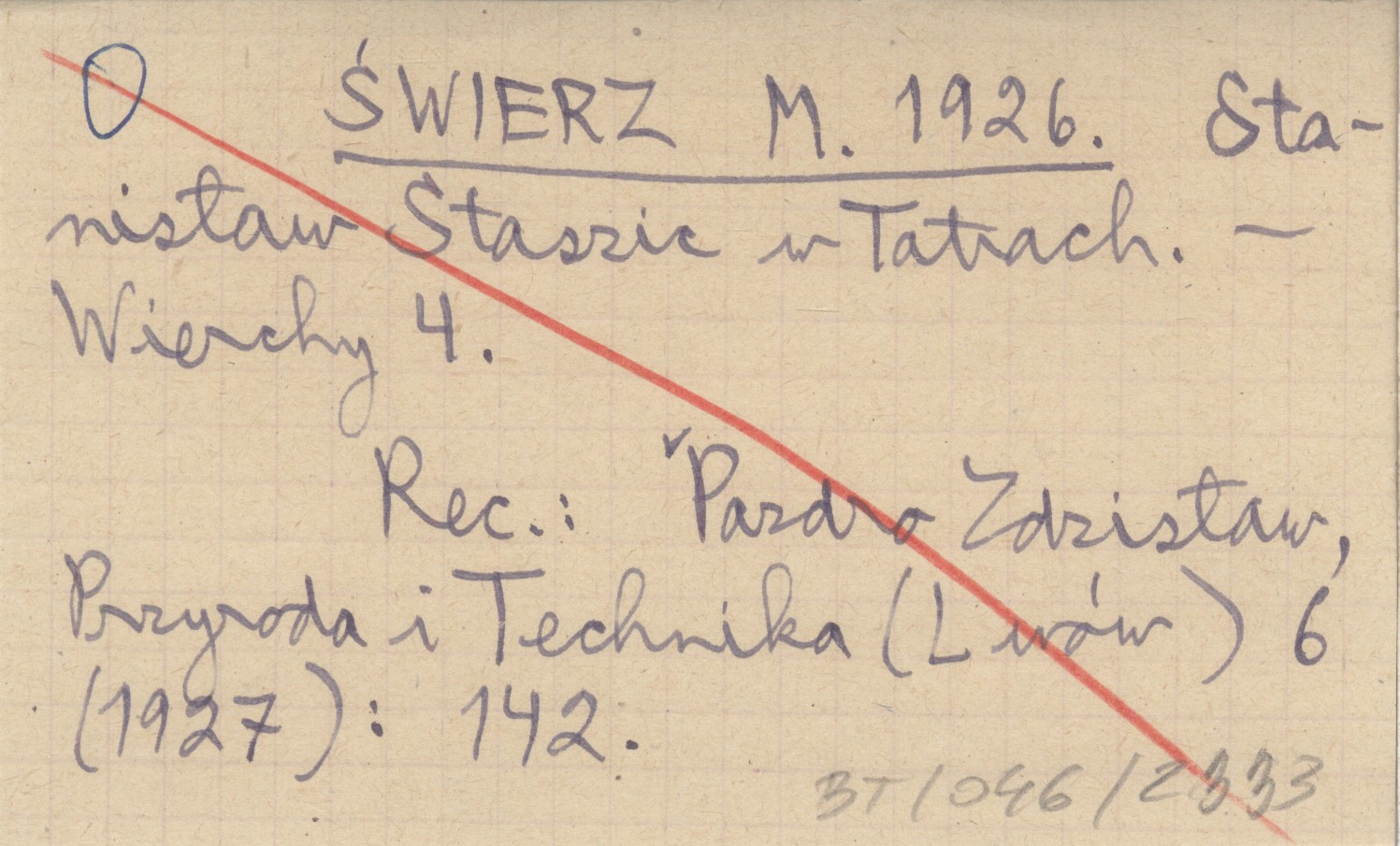 REC: PAZDRO Zdzisław, Przyroda i Technika (Lwów) 6 (1927): 142.