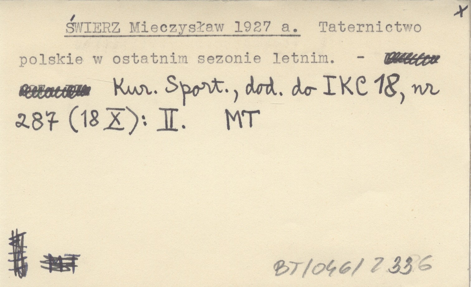ŚWIERZ Mieczysław 1927 a Taternictwo polskie w ostatnim sezonie letnim.
