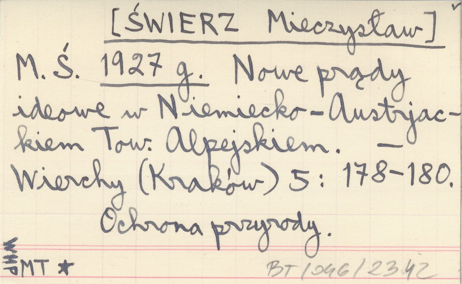 M. Ś. [ŚWIERZ Mieczysław] 1927 g Nowe prądy ideowe w Niemiecko-Austrjackiem Tow. Alpejskiem.