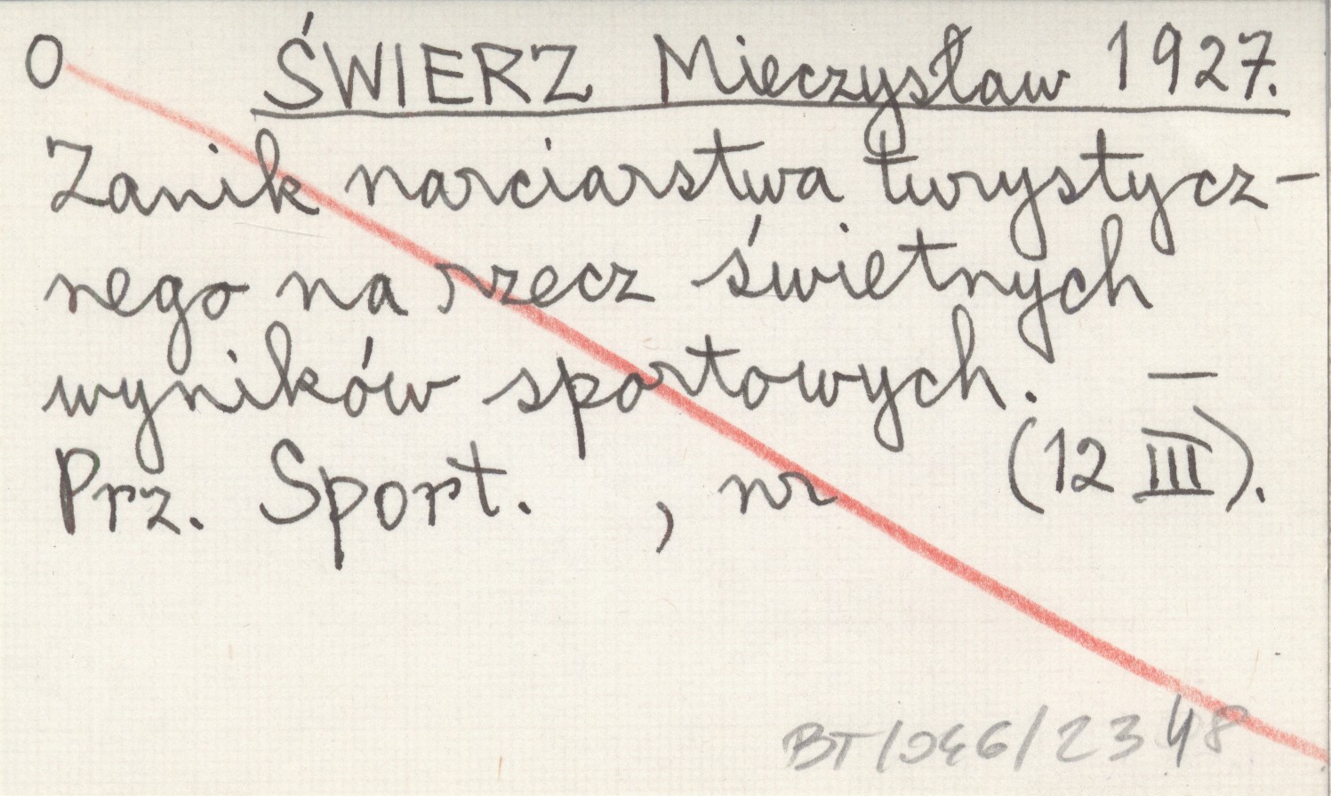 ŚWIERZ Mieczysław 1927 Zanik narciarstwa turystycznego na rzecz świetnych wyników sportowych.