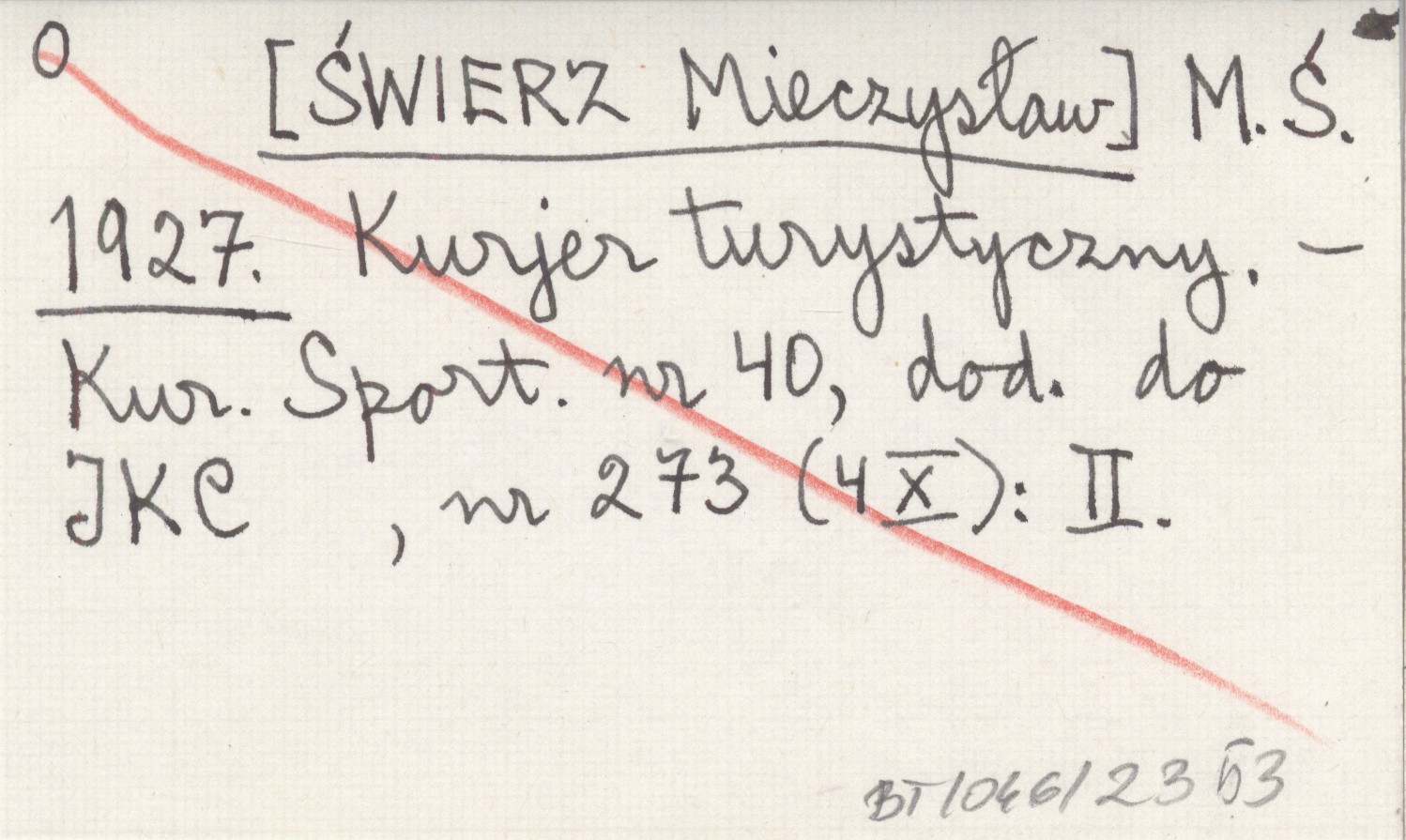 M. Ś. [ŚWIERZ Mieczysław] 1927 Kurjer turystyczny.