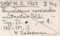 M. S. [ŚWIERZ Mieczysław] 1927 II Międzynarodowe narciarskie mistrzostwo Polski.