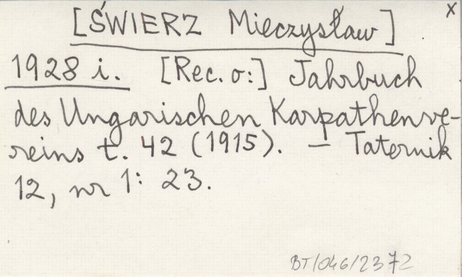 [ŚWIERZ Mieczysław] 1928 i [Rec. o:] Jahrbuch des Ungarischen Karpathen-Vereines t. 42 (1915).