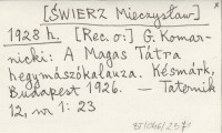 [ŚWIERZ Mieczysław] 1928 h [Rec. o:] G. Komarnicki: A. Magas Tátra hegymászókalauza. Késmárk, Budapest 1926.