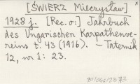 [ŚWIERZ Mieczysław] 1928 j [Rec. o:] Jahrbuch des Ungarischen Karpathen-Vereines t. 43 (1916).
