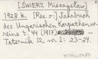 [ŚWIERZ Mieczysław] 1928 k [Rec. o:] Jahrbuch des Ungarischen Karpathen-Vereines t. 44 (1917).