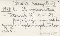 [ŚWIERZ Mieczysław] 1928 l Od wydawnictwa.