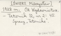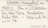 m. [ŚWIERZ Mieczysław] 1928 r [Rec. o:] J. Všetečka: Die Hohe Tatra. Reiseführer. Praha 1924.