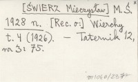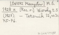 M. Ś. [ŚWIERZ Mieczysław] 1928 n [Rec. o:] Wierchy t. 4 (1926).