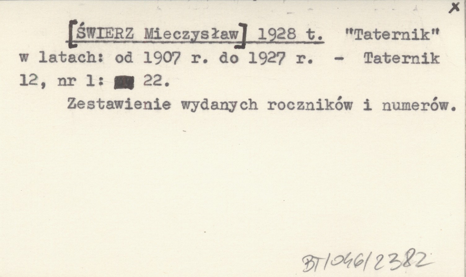 Taternik, 12, nr 1: 22. Zestawienie wydanych roczników i numerów.