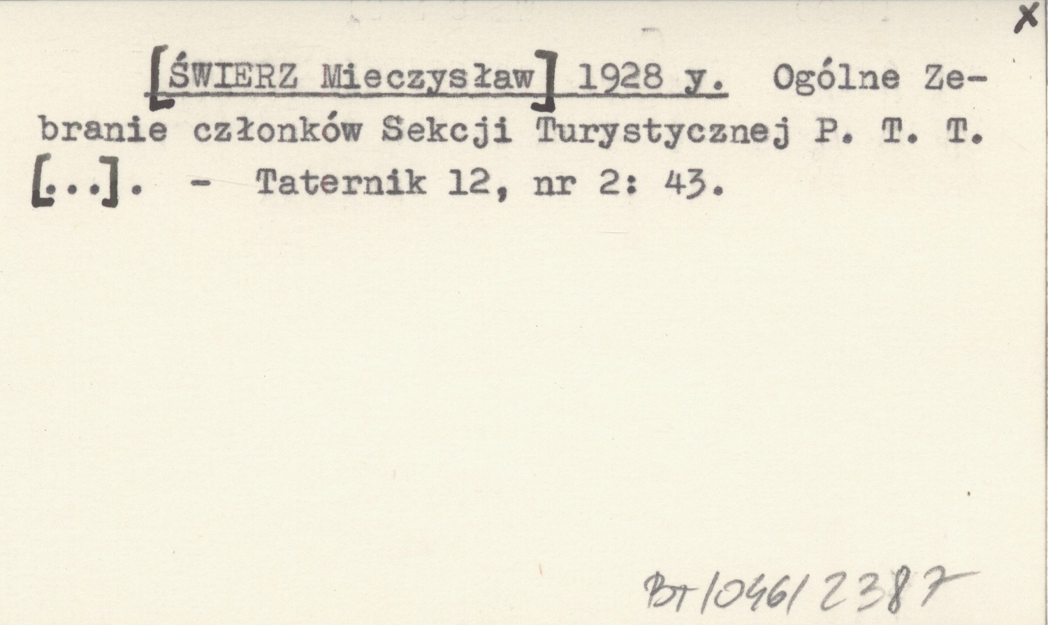 [ŚWIERZ Mieczysław] 1928 y Ogólne Zebranie członków Sekcji Turystycznej P.T.T. [...].
