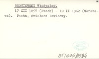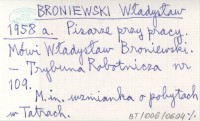 BRONIEWSKI Władysław 1958 a Pisarze przy pracy. Mówi Władysław Broniewski.