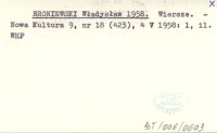BRONIEWSKI Władysław 1958 Wiersze.