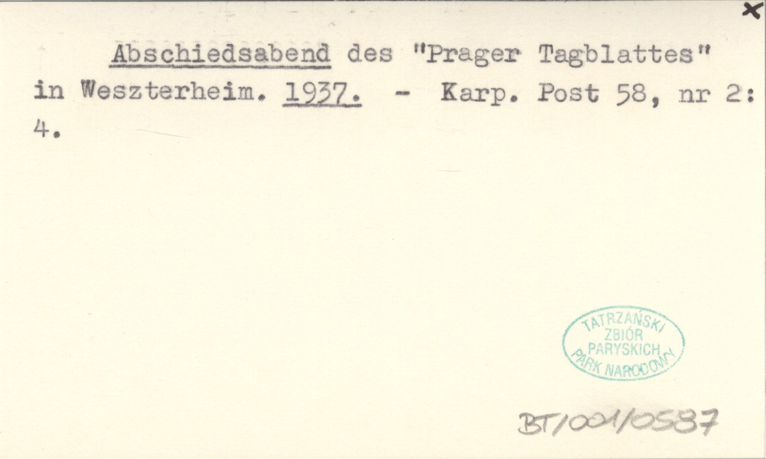 Abschiedsabend des "Prager Tagblattes" in Weszterheim. 1937