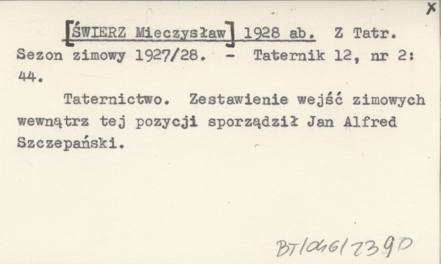 Taternik, 12, nr 2: 44. Taternictwo. Zestawienie wejść zimowych wewnątrz tej pozycji sporządził Jan Alfred Szczepański.