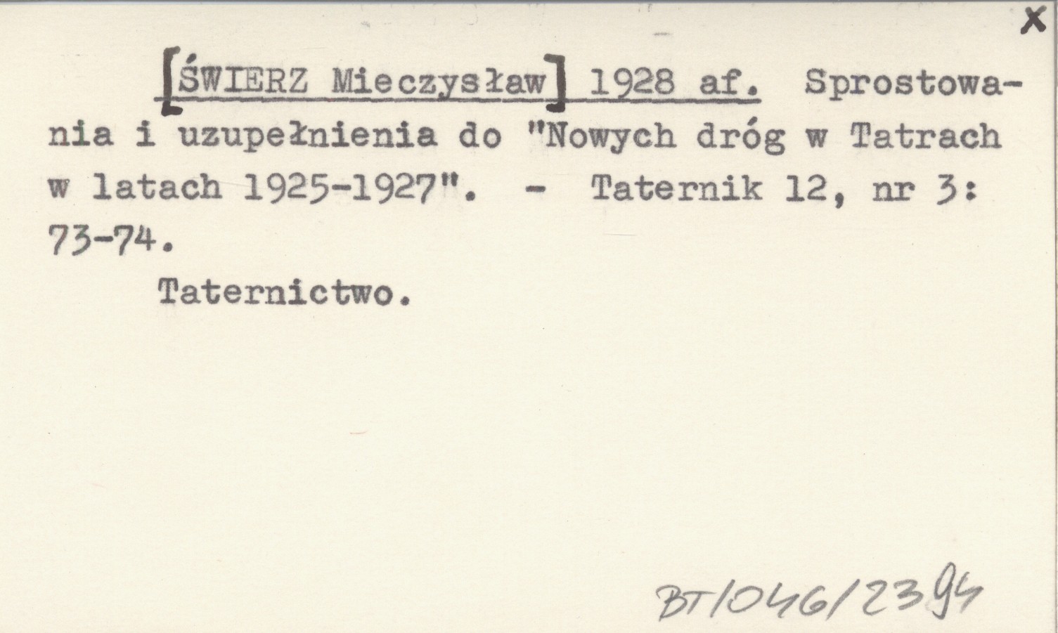 [ŚWIERZ Mieczysław] 1928 af Sprostowania i uzupełnienia do "Nowych dróg w Tatrach w latach 1925-1927".