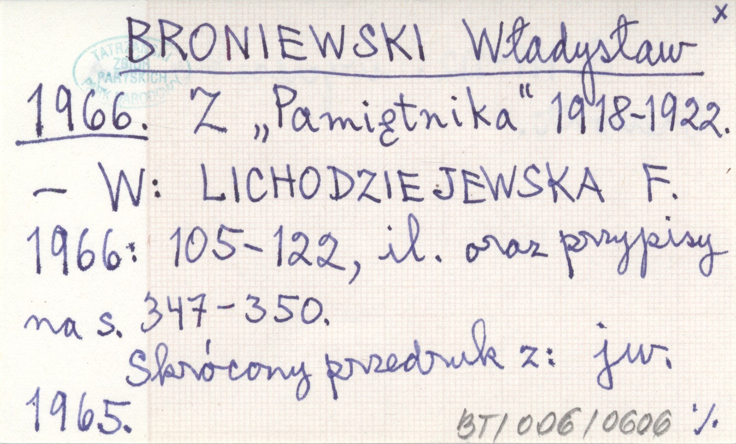 BRONIEWSKI Władysław 1966 Z "Pamiętnika" 1918-1922.