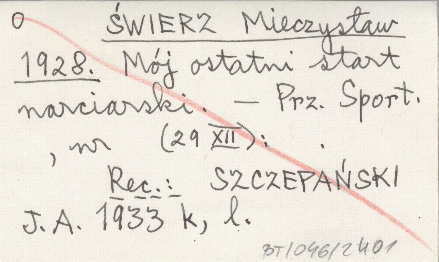 ŚWIERZ Mieczysław 1928 Mój ostatni start narciarski.