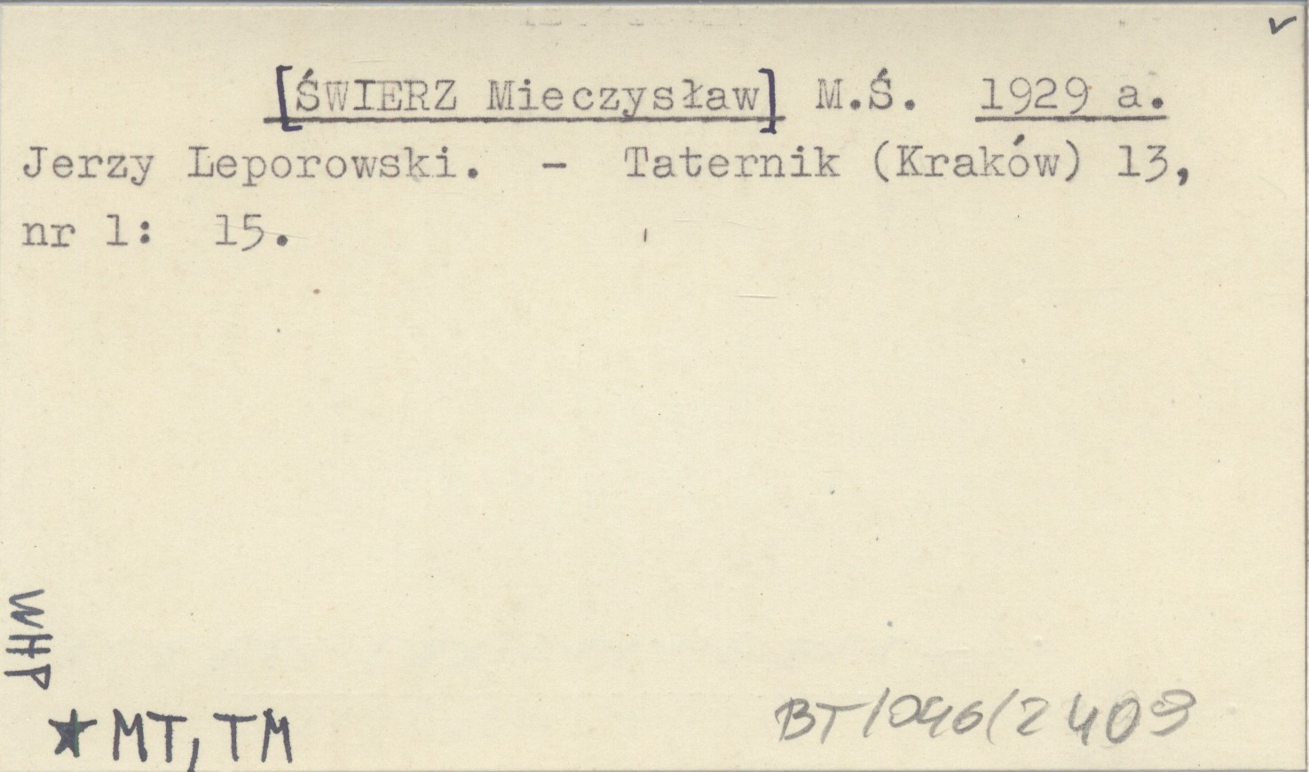 M. Ś. [ŚWIERZ Mieczysław] 1929 a Jerzy Leporowski.