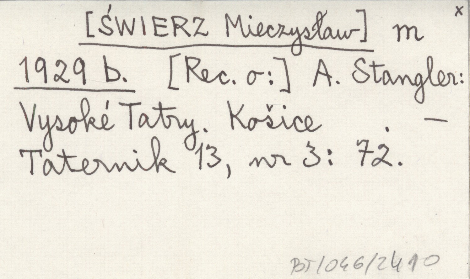 m [ŚWIERZ Mieczysław] 1929 b [Rec. o:] A. Stangler: Vysoké Tatry. Košice.