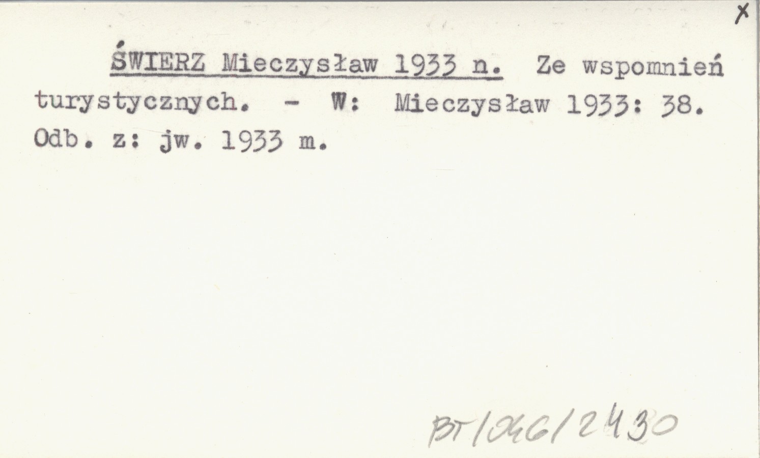 ŚWIERZ Mieczysław 1933 n Ze wspomnień turystycznych.
