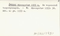 ŚWIERZ Mieczysław 1933 n Ze wspomnień turystycznych.