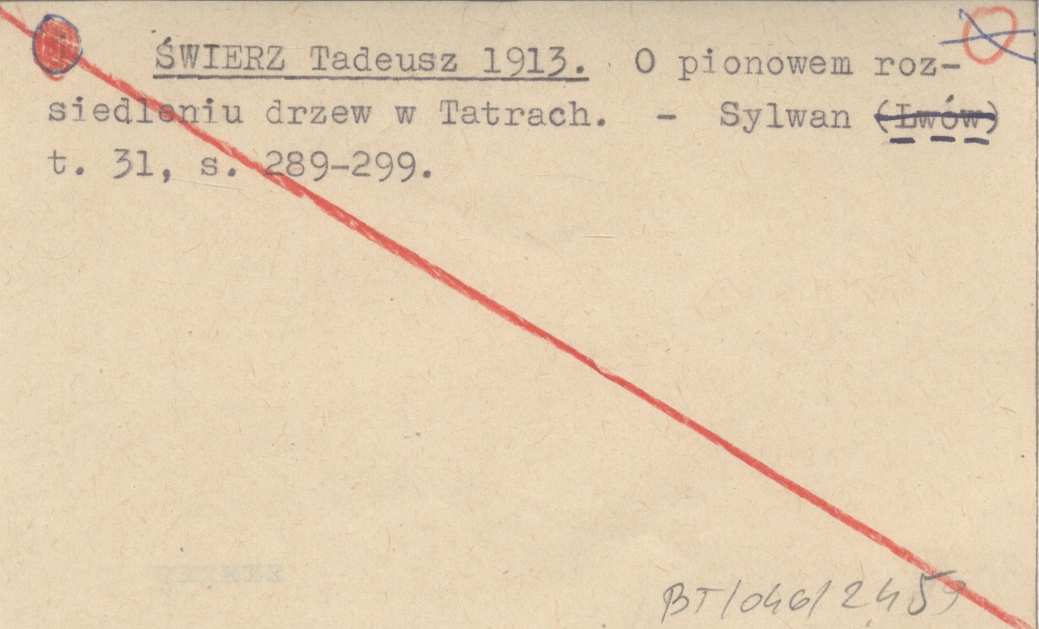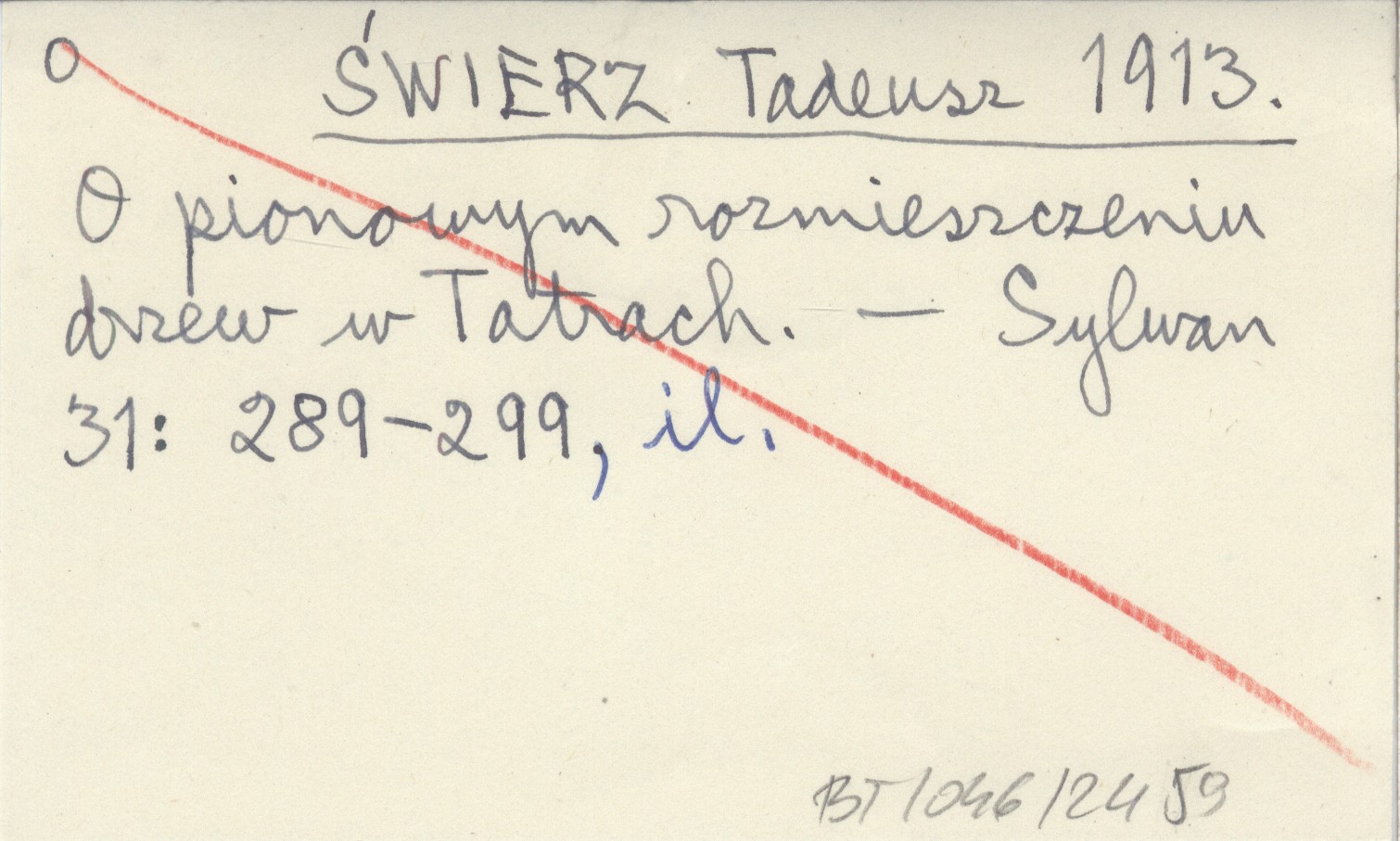 ŚWIERZ Tadeusz 1913 O pionowem rozsiedleniu drzew w Tatrach.