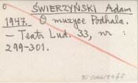 ŚWIERZYŃSKI Adam 1947 O muzyce Podhala.