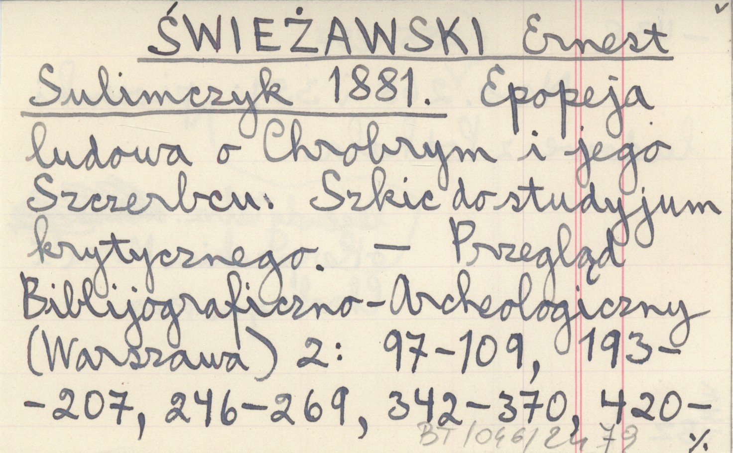 Sulimczyk ŚWIEŻAWSKI Ernest 1881 Epopeja ludowa o Chrobrym i jego Szczerbcu. Szkic do studyum krytycznego.