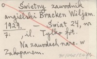 Świetny zawodnik angielski Bracken Wiljam. 1929